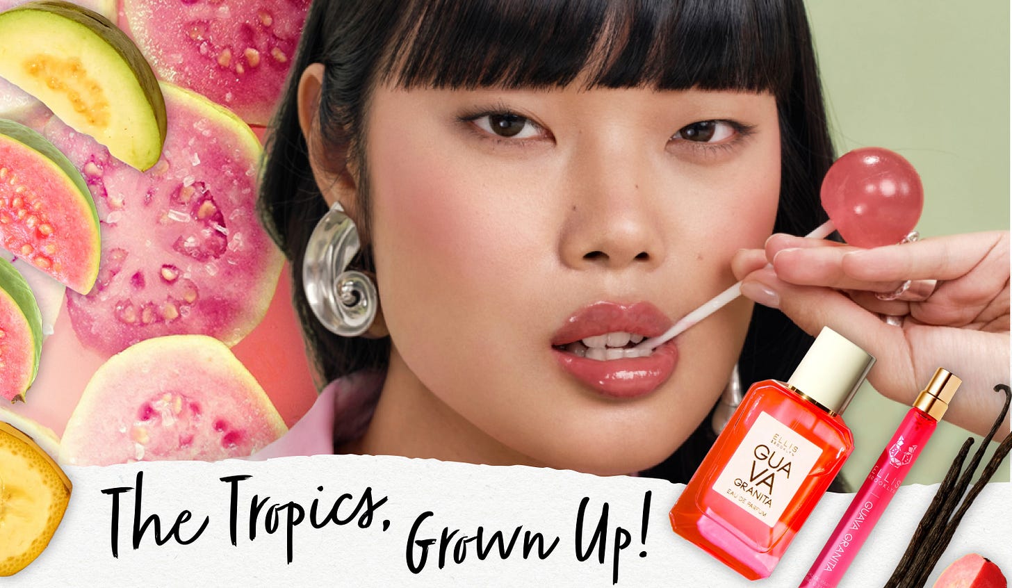 What started as a social shorthand quickly translated into measurable momentum. According to Spate, fragrance-related Google searches paired with “guava” surged more than 1,000 percent year over year, with TikTok accelerating interest in guava combinations and formats. The signal extends beyond scent. Across skincare, searches for guava climbed 76 percent, with brands like Glow Recipe and Eadem among the key beneficiaries. By last summer, WWD was already tracking why guava-forward launches were suddenly everywhere, from Ellis Brooklyn’s Guava Granita Eau de Parfum to guava appearing as a defining middle note in Anna Sui’s Wild Wonder Electric Whisper. What followed was sustained visibility across fragrance coverage and social discovery, reinforcing Guava’s staying power beyond a single launch cycle. Guava perfumes have been trending across both editorial features and social searches, signaling durability rather than novelty.