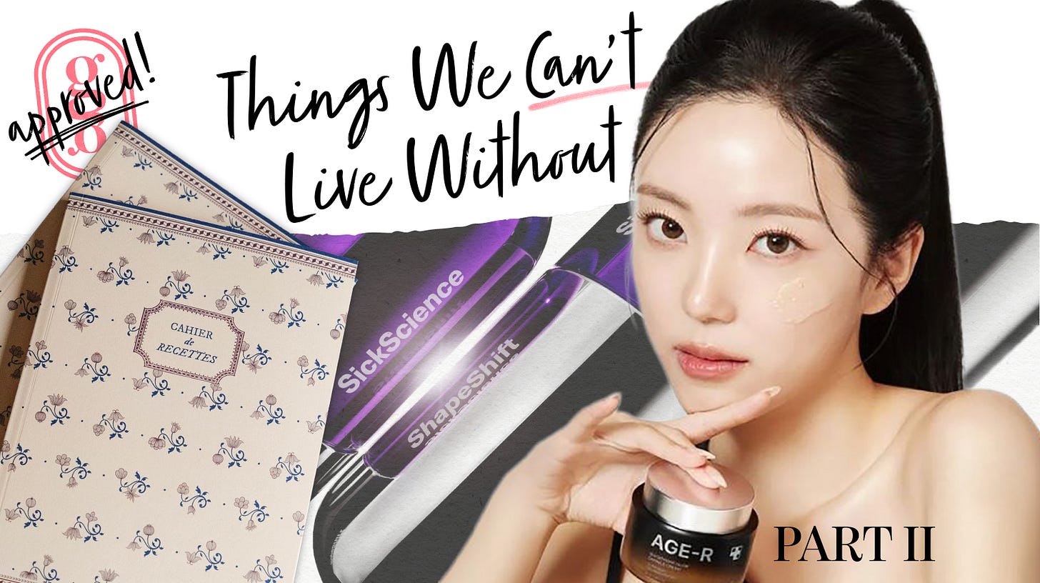 Consider this Part II: a snapshot of a few things we’re currently enjoying and recommending. Some beauty and wellness, some accessories, some cultural rabbit holes. All things we genuinely can’t stop talking about. Of course, at the very top of the list are our husbands, children, families, and each other. But since this column celebrates the slightly more material pleasures, here are a few things currently bringing a little beauty into everyday life.
